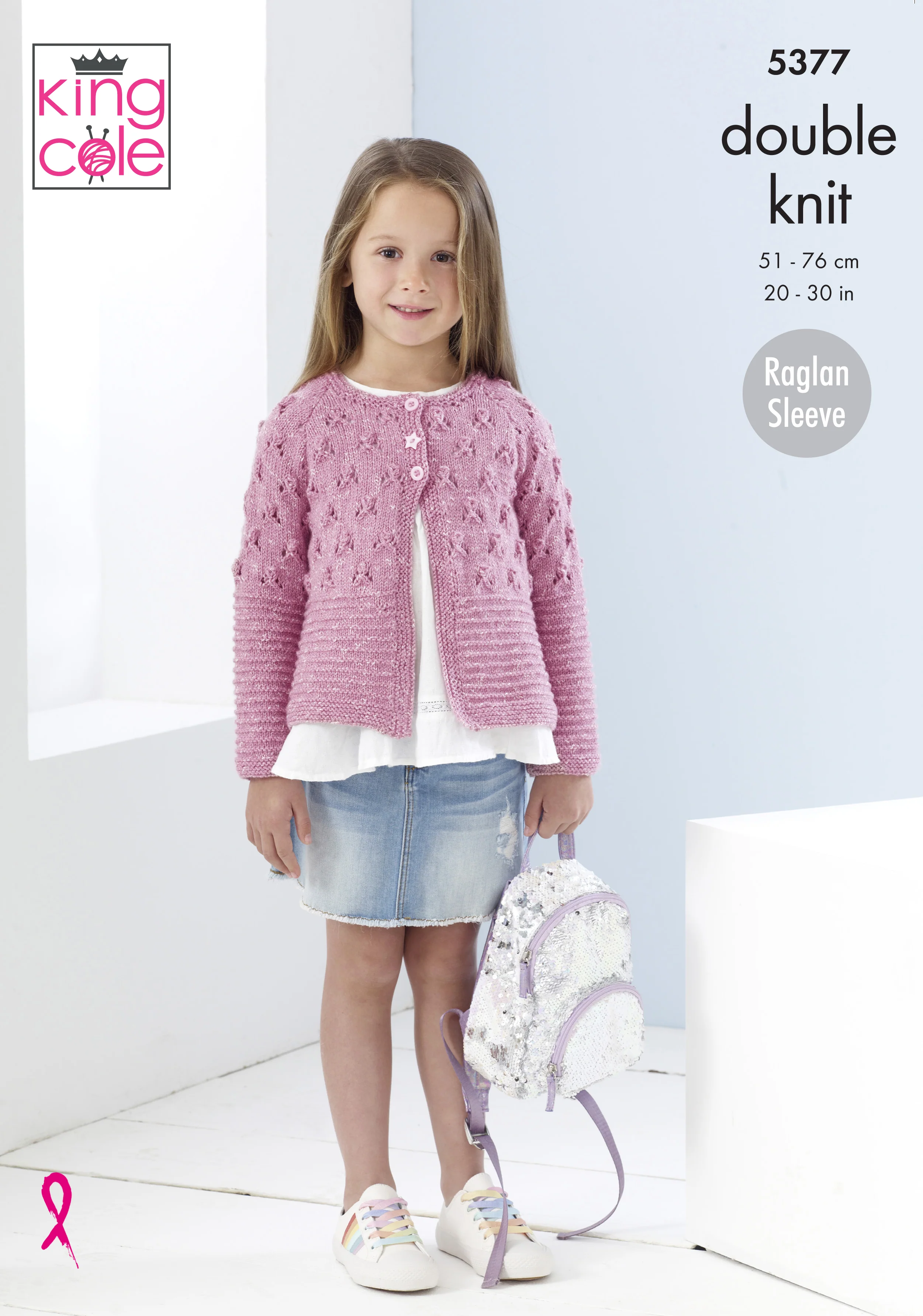 King Cole 5377 Double Knitting Pattern - Baby / Children's Cotton DK Cardigans 18 mnths - 10 yrs