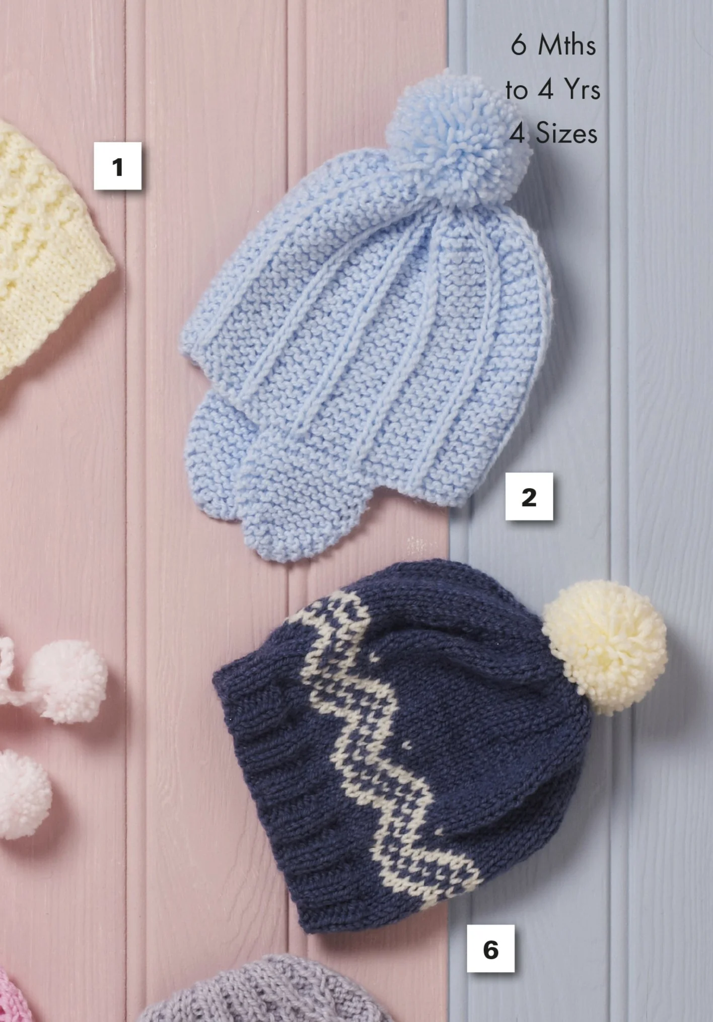 This leaflet pattern will instruct you on how to make Hats for 6 month old babies to 4 year old children. The yarn used in this pattern is King Cole Comfort Aran. For requirements, please click through the images.